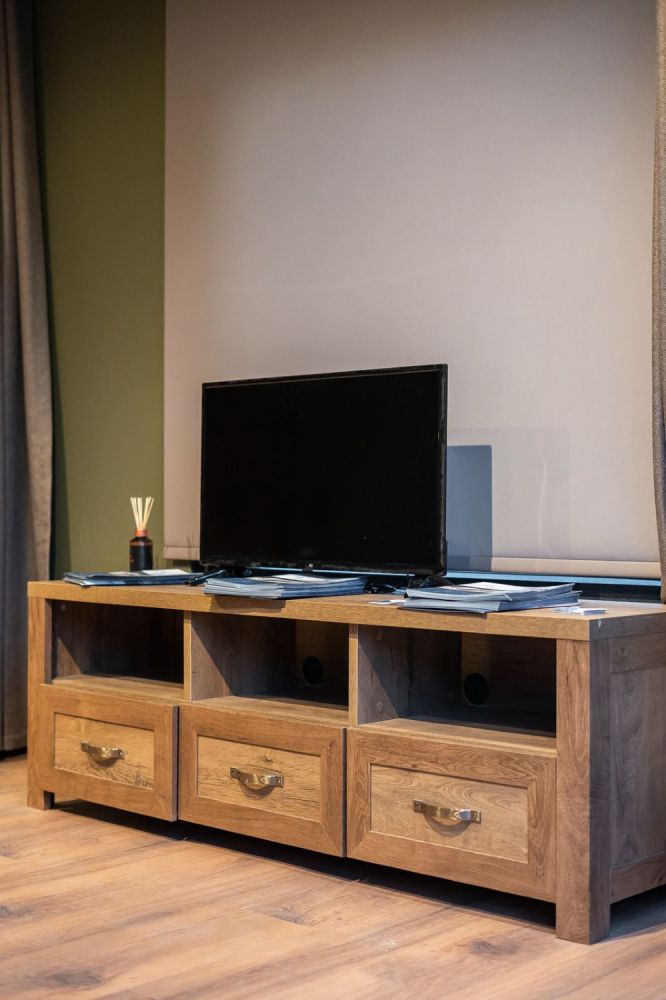 Το δάπεδο του χώρου είναι επενδυμένο με ανθεκτικό laminate σε φυσική απόχρωση ξύλου, ενώ τα κουφώματα (πόρτες και μπαλκονόπορτες) είναι από PVC, εξασφαλίζοντας άριστη θερμομόνωση, ηχομόνωση και αντοχή στον χρόνο.
