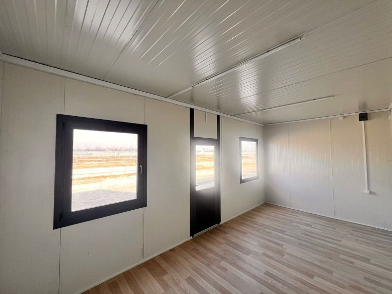 Ανθεκτική εργοστασιακή κατασκευή με τοποθετημένα ειδικών προδιαγραφών πάνελ για εξαιρετικό κλίμα διαβίωσης , εσωτερική Ηλεκτρολογική εγκατάσταση ( Φώτα - πρίζες - γενικό πίνακα - LED φωτισμό για οικονομία στην κατανάλωση ρεύματος , δάπεδο Laminate )