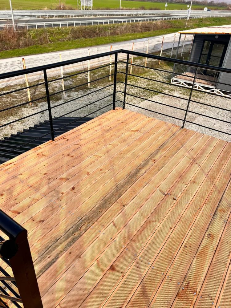 Ανθεκτική εργοστασιακή κατασκευή με τοποθετημένα ειδικών προδιαγραφών πάνελ για εξαιρετικό κλίμα διαβίωσης , εσωτερική Ηλεκτρολογική εγκατάσταση ( Φώτα - πρίζες - γενικό πίνακα - LED φωτισμό για οικονομία στην κατανάλωση ρεύματος , δάπεδο Laminate )